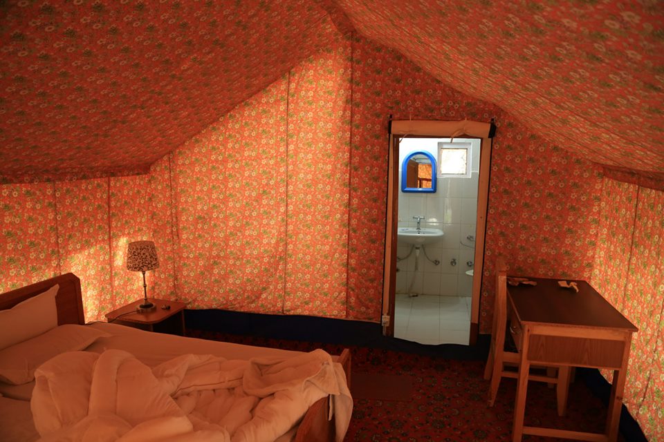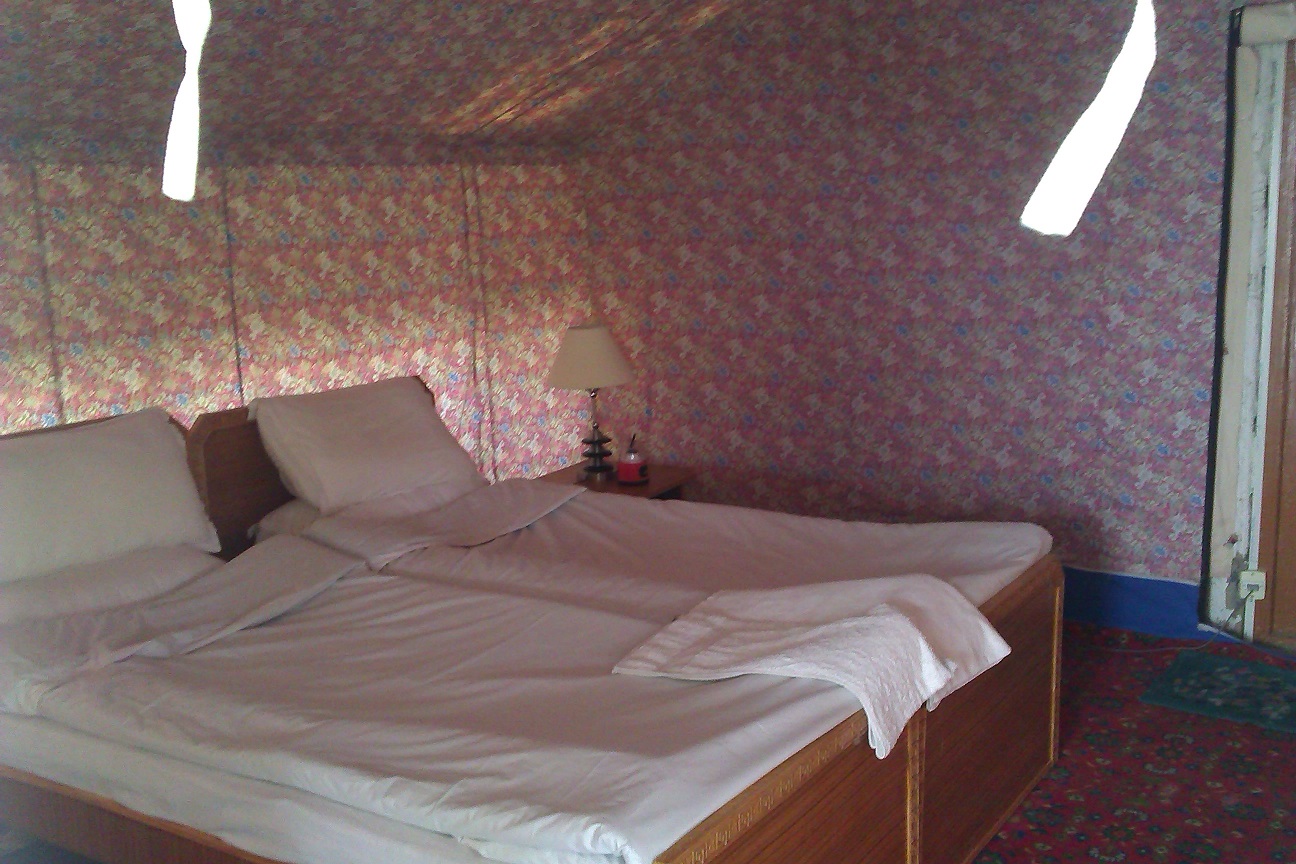 এইবার একটু বিস্তারিত ভাবে বলা যাক নুব্রা উপত্যকার কথা। এখানে থাকা সত্যিই এক বিচিত্র অভিজ্ঞতা। এখানে থাকার জন্য কোন ইঁট-কাঠের তৈরি হোটেল নেই। আছে অসংখ্য তাঁবু, সারে সারে। কিন্তু তাদের মধ্যে কি অপূর্ব সাজ সরঞ্জাম! প্রয়োজনীয় সব কিছুর ব্যবস্থা করা আছে। আলোর ব্যবস্থা তো আছেই, আছে সুন্দর খাট বিছানা, ড্রেসিং টেবিল, লাগোয়া বাথরুম, সামনে একফালি বারান্দা এবং শুনতে অবিশ্বাস্য লাগলেও – একটি ছোট্ট জানালা।
