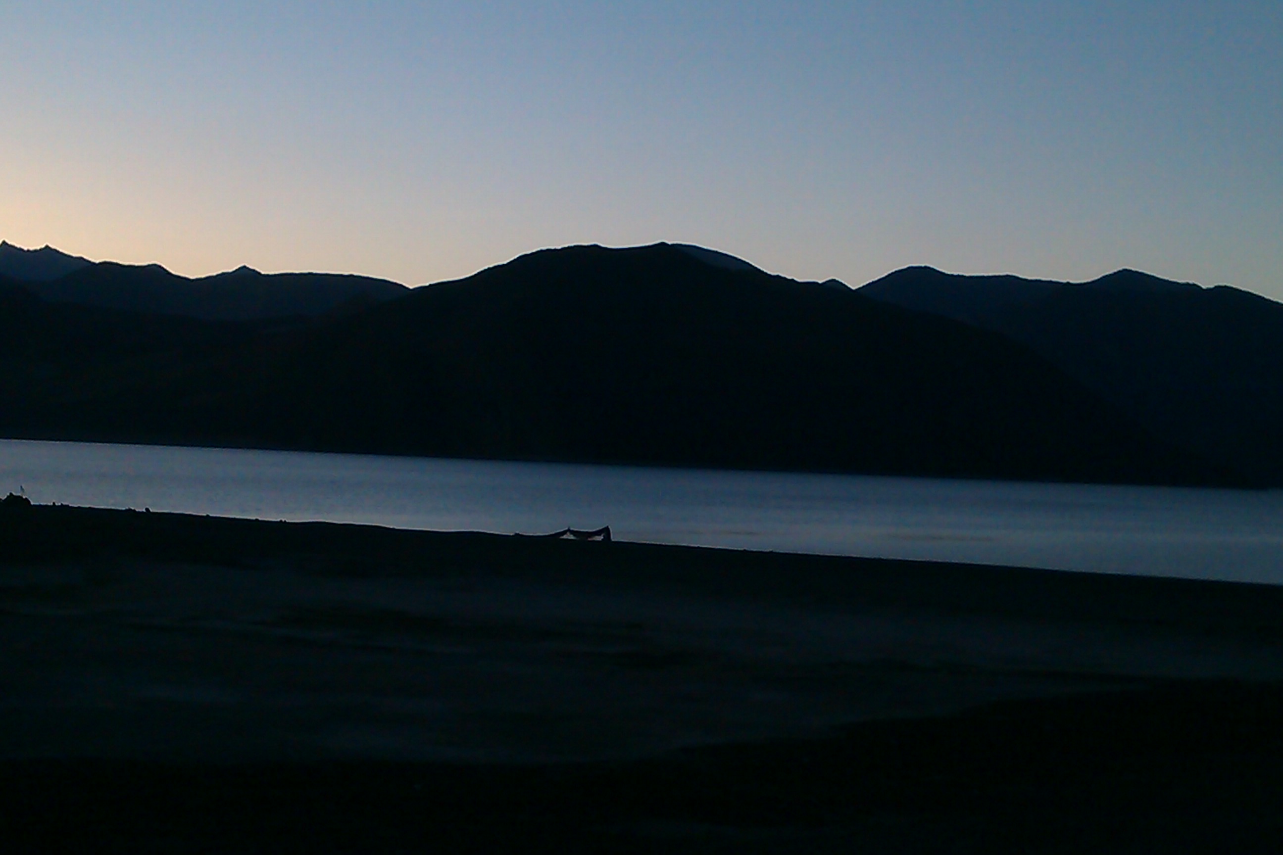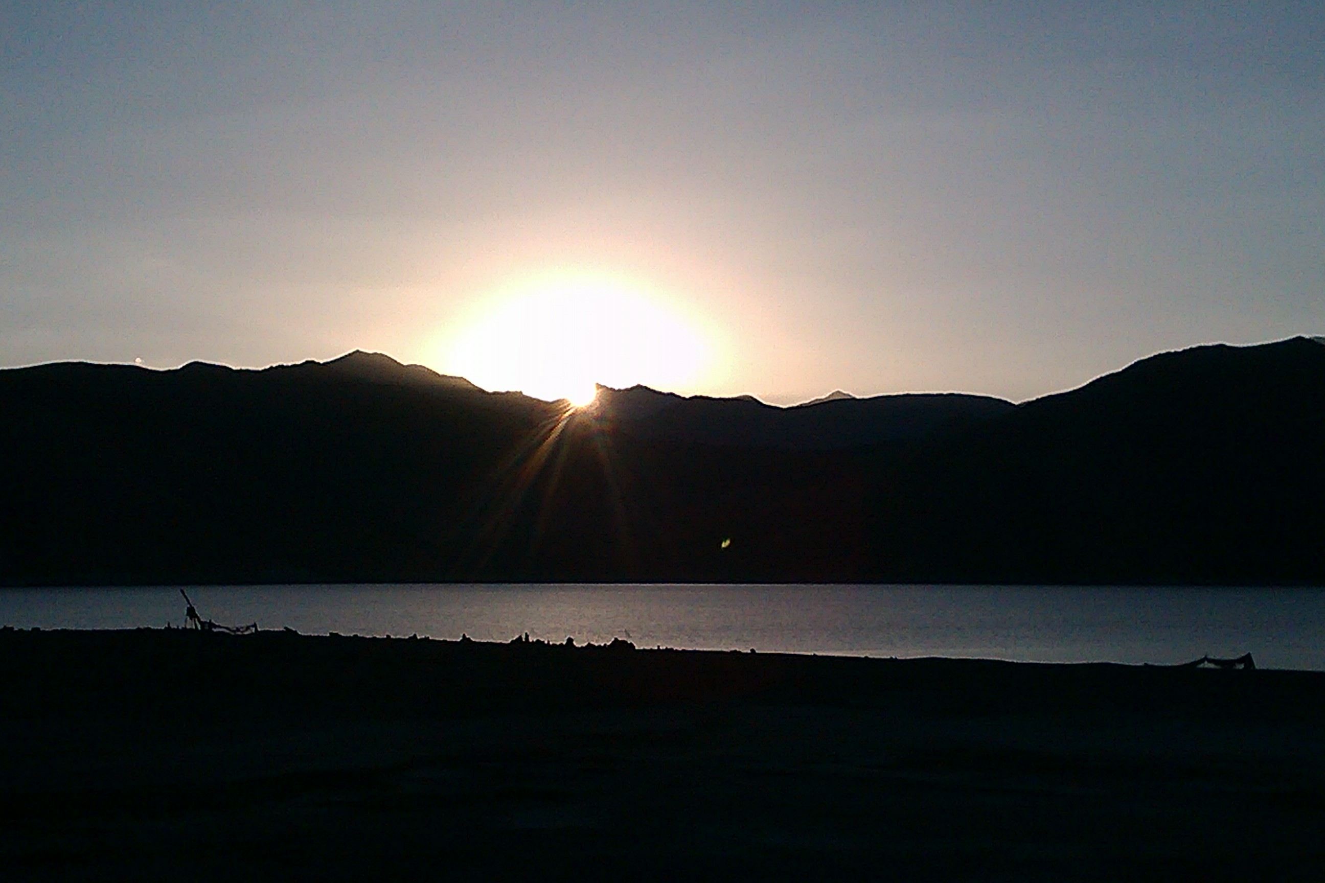 সূর্য ওঠার বিভিন্ন রকম ভাব থাকে, সাগরে সূর্যোদয় দেখা যায় যেন এক রঙীন থালা জলের মধ্যে থেকে উঠে এল। আবার পাহাড়ে সূর্য যেন লাফিয়ে চড়ে বসে। বেশ আচমকাই। এখানে সূর্যোদয় বেশ আলাদা। প্রথমে দেখা গেল প্যাংগং লেকের চারধারের পাহাড়ে রঙীন আভা, খুব আস্তে আস্তে পাহাড়ের গা রক্তবর্ণ ধারণ করছে। তারপরে যেন আগে থেকে জানান দিয়ে, আমাদের মানসিক ভাবে প্রস্তুত করে তিনি আস্তে আস্তে অবতীর্ণ হলেন। অপূর্ব! সৌভাগ্যবশতঃ আকাশে মেঘের ছিটেফোঁটাও ছিলনা, পুরোটাই দৃশ্যমান হল। এ এক অভূতপূর্ব দৃশ্য। ভাষায় বর্ণনা করার আমার ক্ষমতা নেই , নীচের ছবিগুলি দেখলে কিছুটা হয়তো আঁচ পাওয়া যেতে পারে।