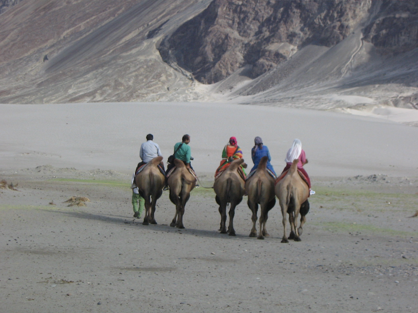 এই উপত্যকাতে আছে এক অদ্ভুত দু-কুঁজ ওয়ালা উট। উটে চড়ার কথা তো হবেই, তার আগে একটু বলে নিই লাদাখের নৈসর্গের কথা। কাশ্মীর বা হিমাচলের মত লাদাখের পাহাড়ে কিন্তু সেরকম সবুজের আভাস দেখা যায় না। এখানে সেরকম বৃষ্টিপাত না হওয়ার ফলে গাছপালার সংখ্যা আশ্চর্যজনক ভাবে কম। এখানকার আবহাওয়ার সঙ্গে মরুভূমির কিছুটা মিল আছে। আর মরুভূমি থাকবে, আর সেই মরুভূমির জাহাজ থাকবে না? এর নামই অবশ্য – Cold Desert.