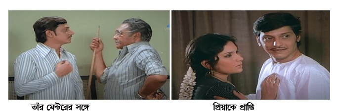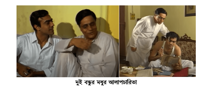 এই ছবি দুটি দেখলে বোঝা যায়, কি আশ্চর্যভাবেই না সেই বন্ধুত্বের মুহূর্তগুলিকে তুলেছেন বাসু চ্যাটার্জি। এরকম দৃশ্য বারেবারে ফিরে এসে আমাদের তাদের দুজনের মধ্যেকার অনন্য রসায়নটি আমাদের বুঝতে সাহায্য করেছে। দুজনের চোখের চাহনির বা বসার ভঙ্গির মধ্যে দিয়েই যেন তাদের চরিত্র প্রতিভাত।